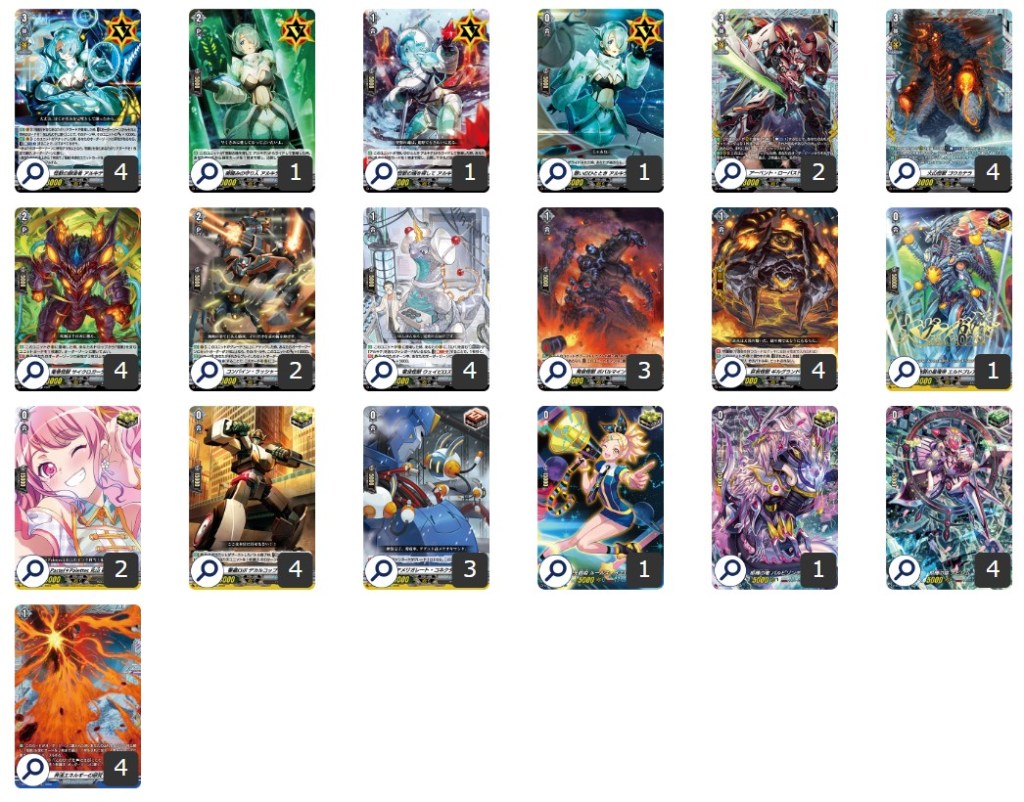 並於先導攻擊時,如果有設置3枚研究指令,能選擇一個後衛設置到指令區,之後看牌頂7張牌,將含有怪獸名的單位叫到後衛區,進行穩定的4連擊。