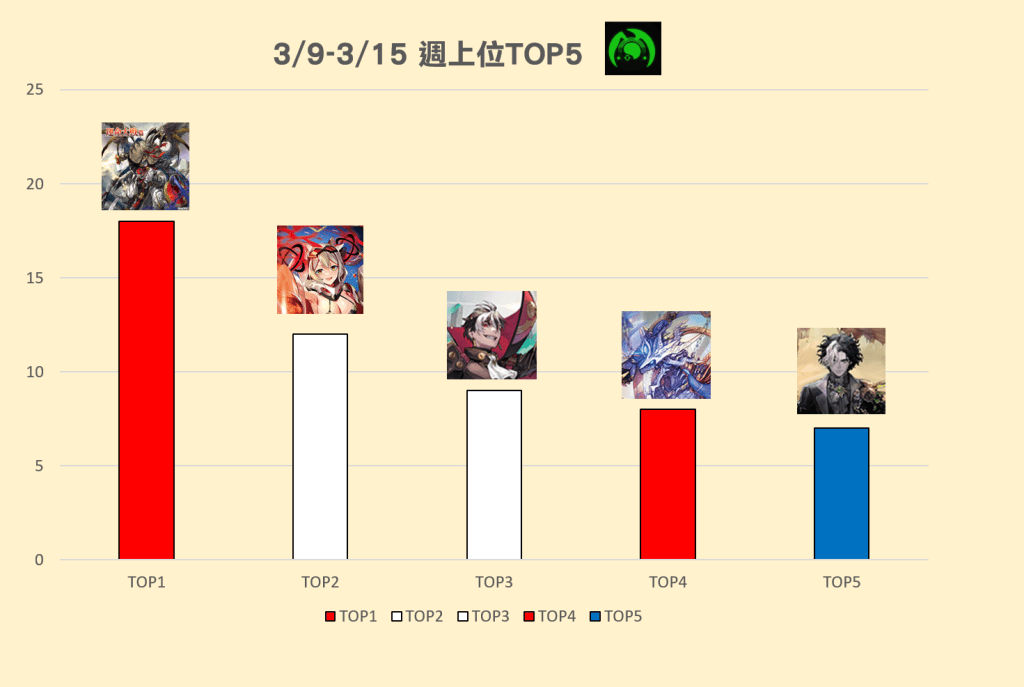 3/9(六)-3/15(五) 週上位TOP5